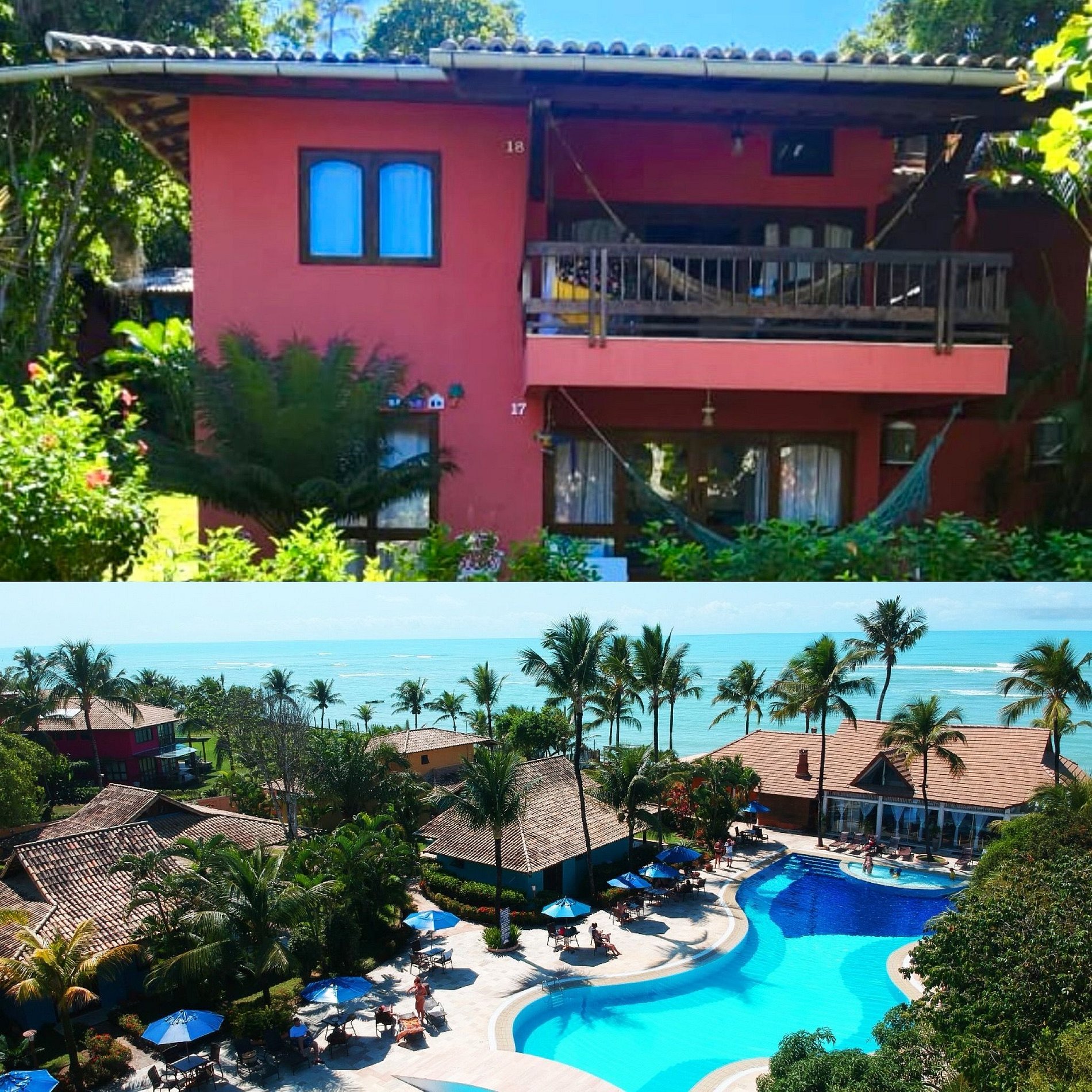 Casa 18 – Lindo imóvel no piso superior com fantástica vista para o jardim, localizado em Arraial d’Ajuda, dentro de condomínio fechado com segurança 24h, acesso à praia do Mucugé e piscina imensa com total infraestrutura,espreguiçadeiras, mesas, cadeiras, guarda-sol e ducha de banho!