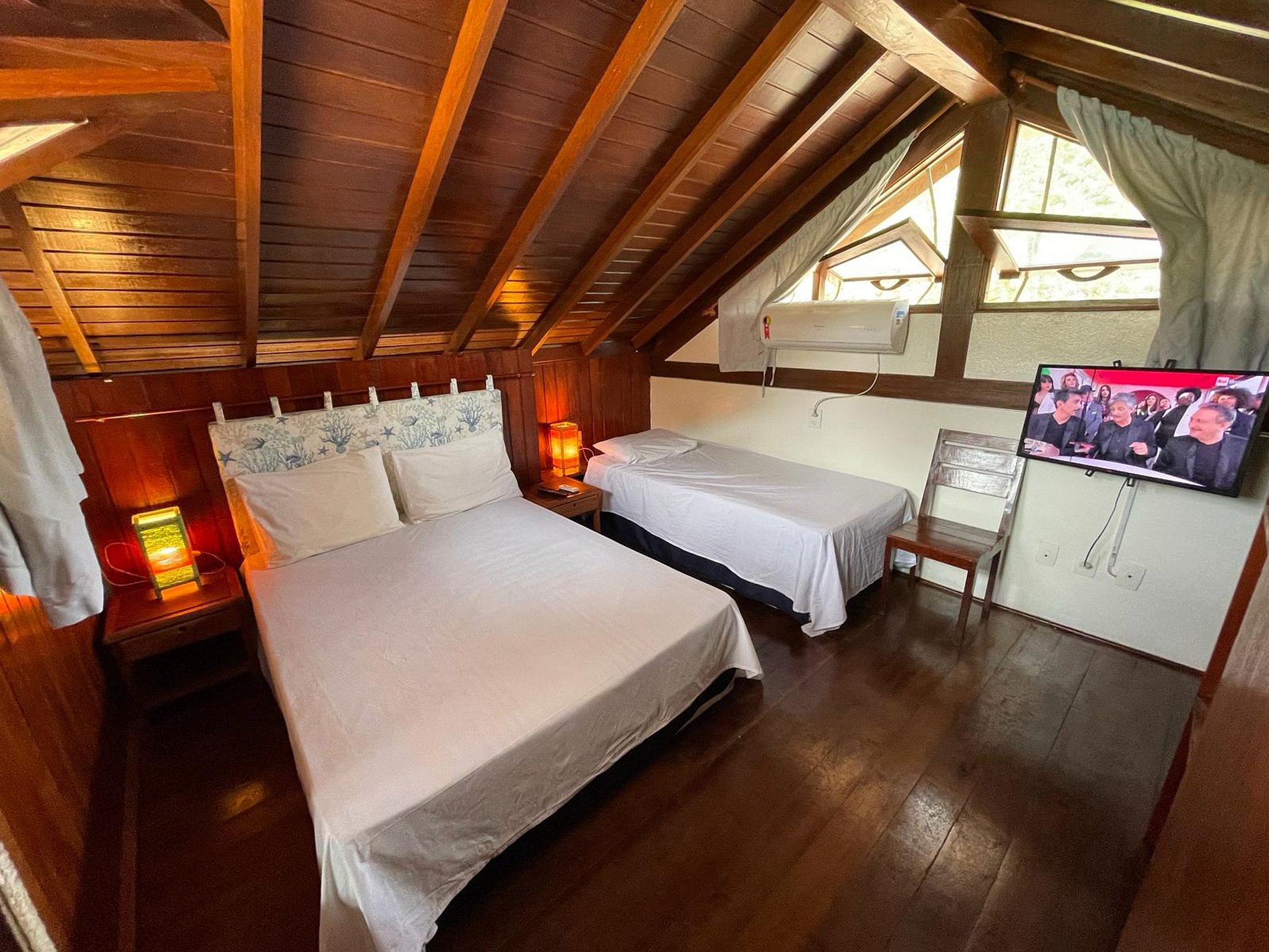 - Quarto mezzanino, Piso superior com cama de casal, cama de solteiro, com vista para piscina, ar-condicionado.