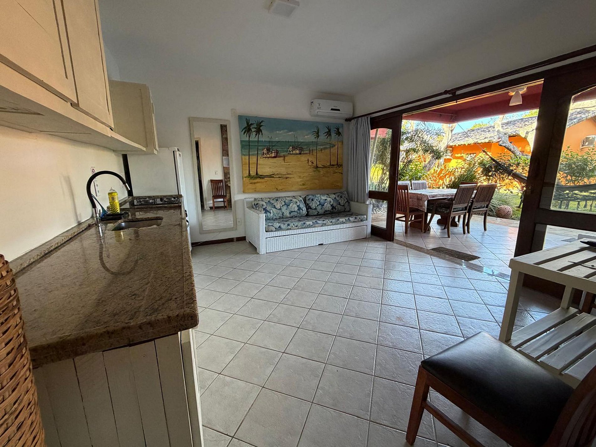 Todos os apartamento são mobiliados, decorados com muito bom gosto pelo Marco que é design de interiores na Itália, totalmente equipadas e prontas para morar, sem burocracia e sem boletos. Você só precisa escolher a casa que mais combina com seu estilo de vida e seu período de permanência. Estamos no melhor condomínio beira mar de Arraial d’Ajuda.