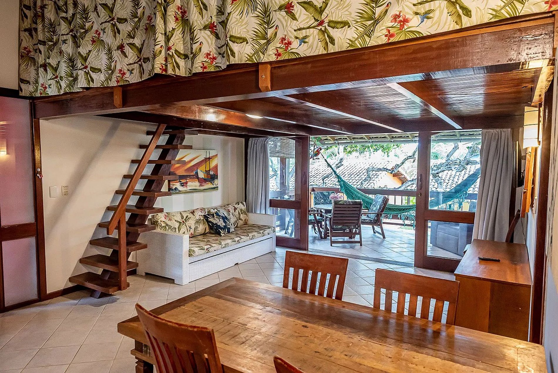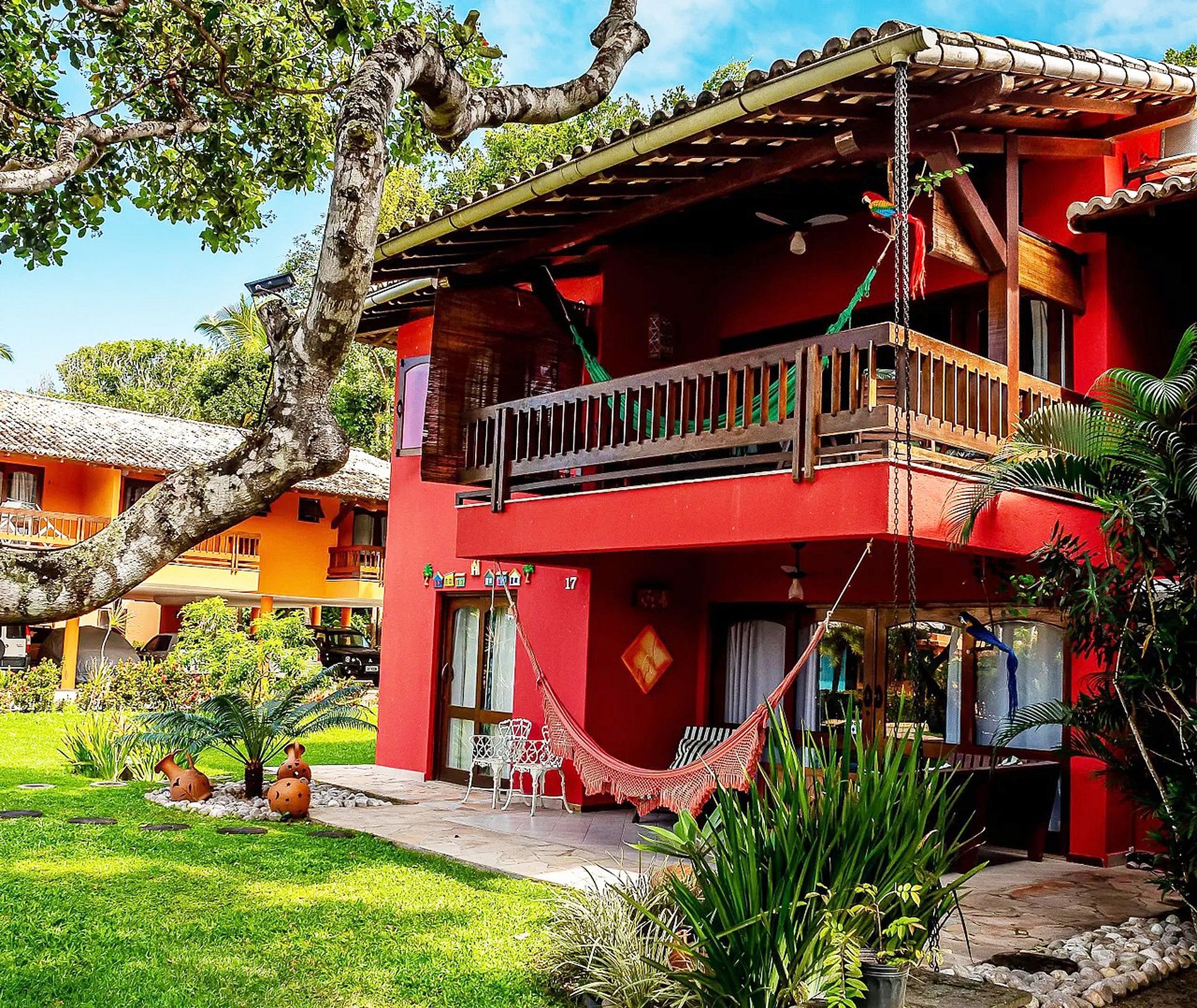 Casa 18 – Lindo imóvel no piso superior com fantástica vista para o jardim, localizado em Arraial d’Ajuda, dentro de condomínio fechado com segurança 24h, acesso à praia do Mucugé e piscina imensa com total infraestrutura,espreguiçadeiras, mesas, cadeiras, guarda-sol e ducha de banho!