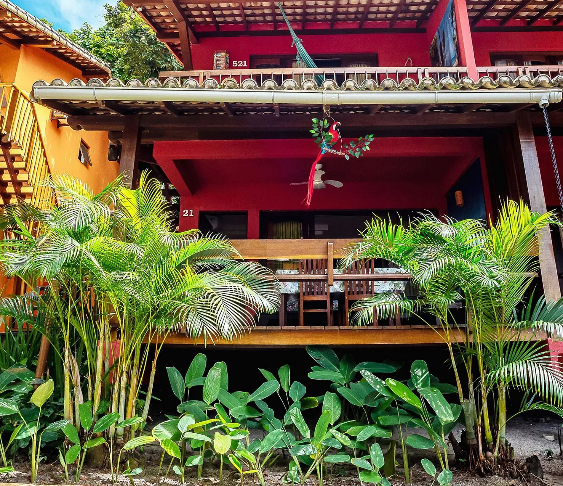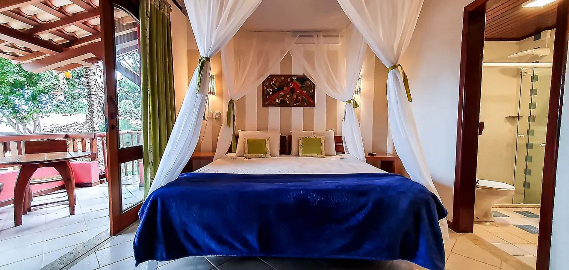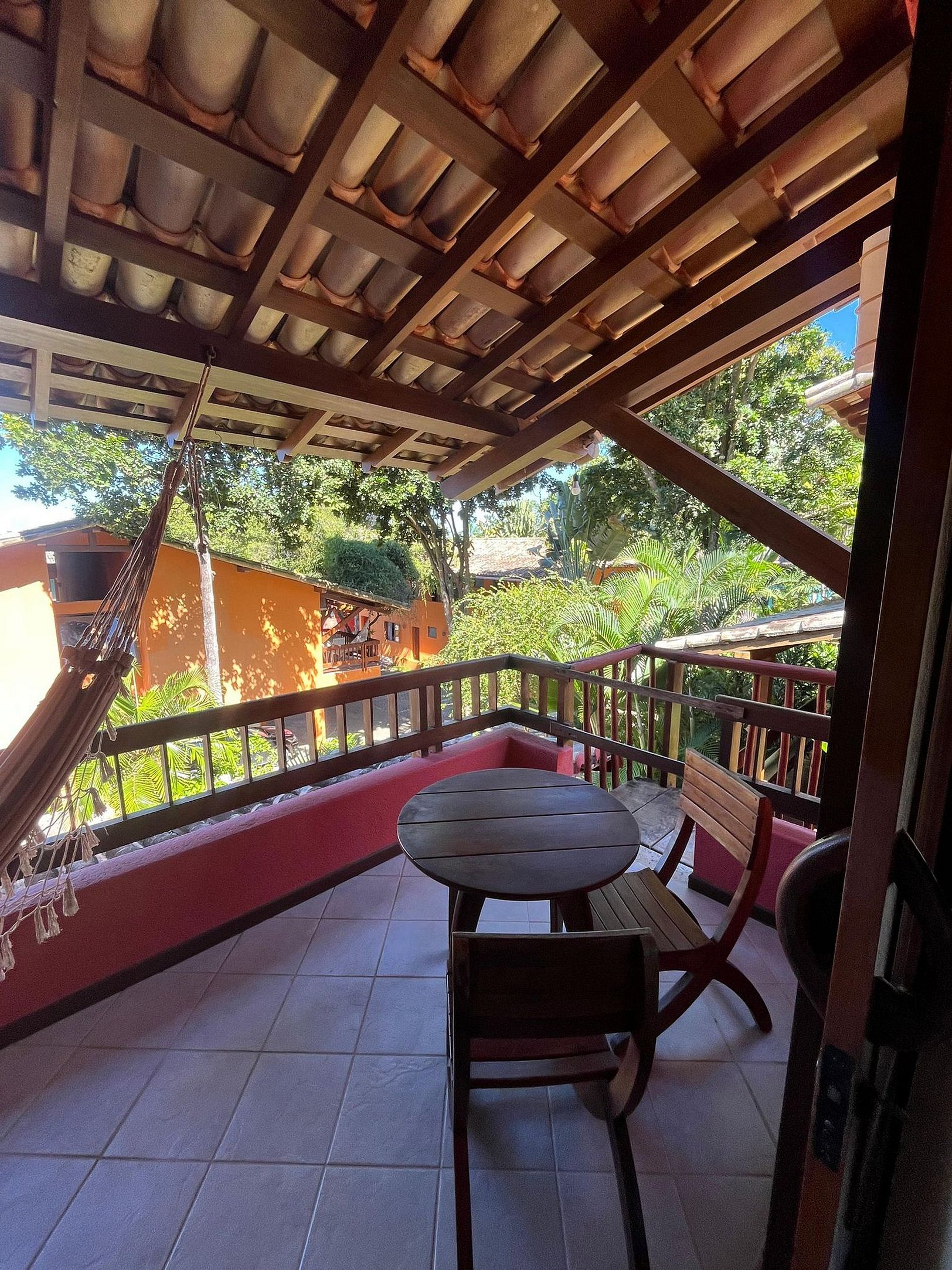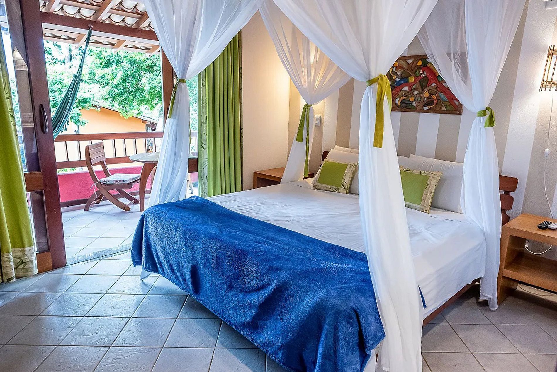 -Suíte com vista para mar e jardim, cama King size, varanda com rede, ar-condicionado, TV, armario.