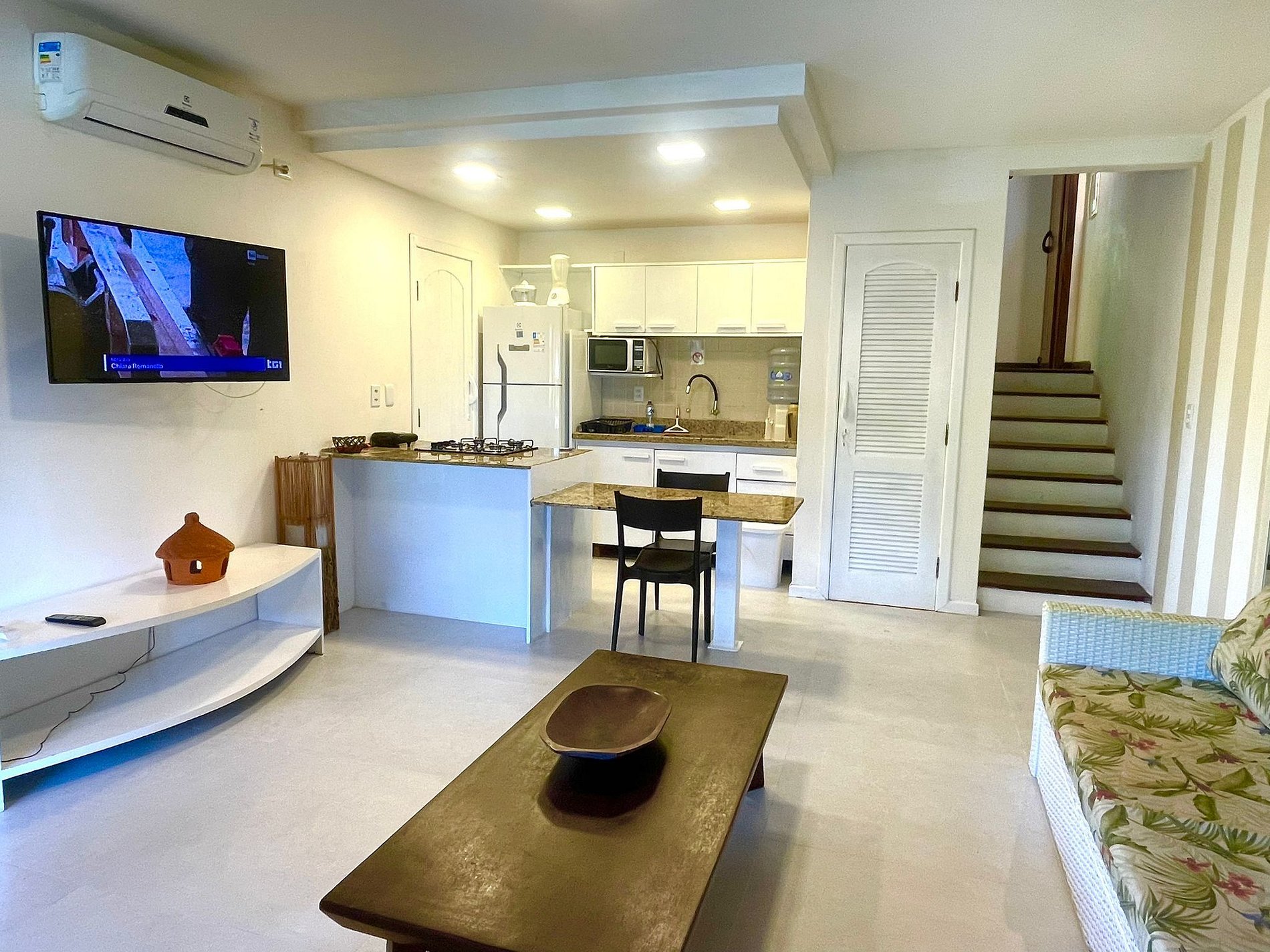 Todos os apartamento são mobiliados, decorados com muito bom gosto pelo Marco que é design de interiores na Itália, totalmente equipadas e prontas para morar, sem burocracia e sem boletos. Você só precisa escolher a casa que mais combina com seu estilo de vida e seu período de permanência. Estamos no melhor condomínio beira mar de Arraial d’Ajuda.