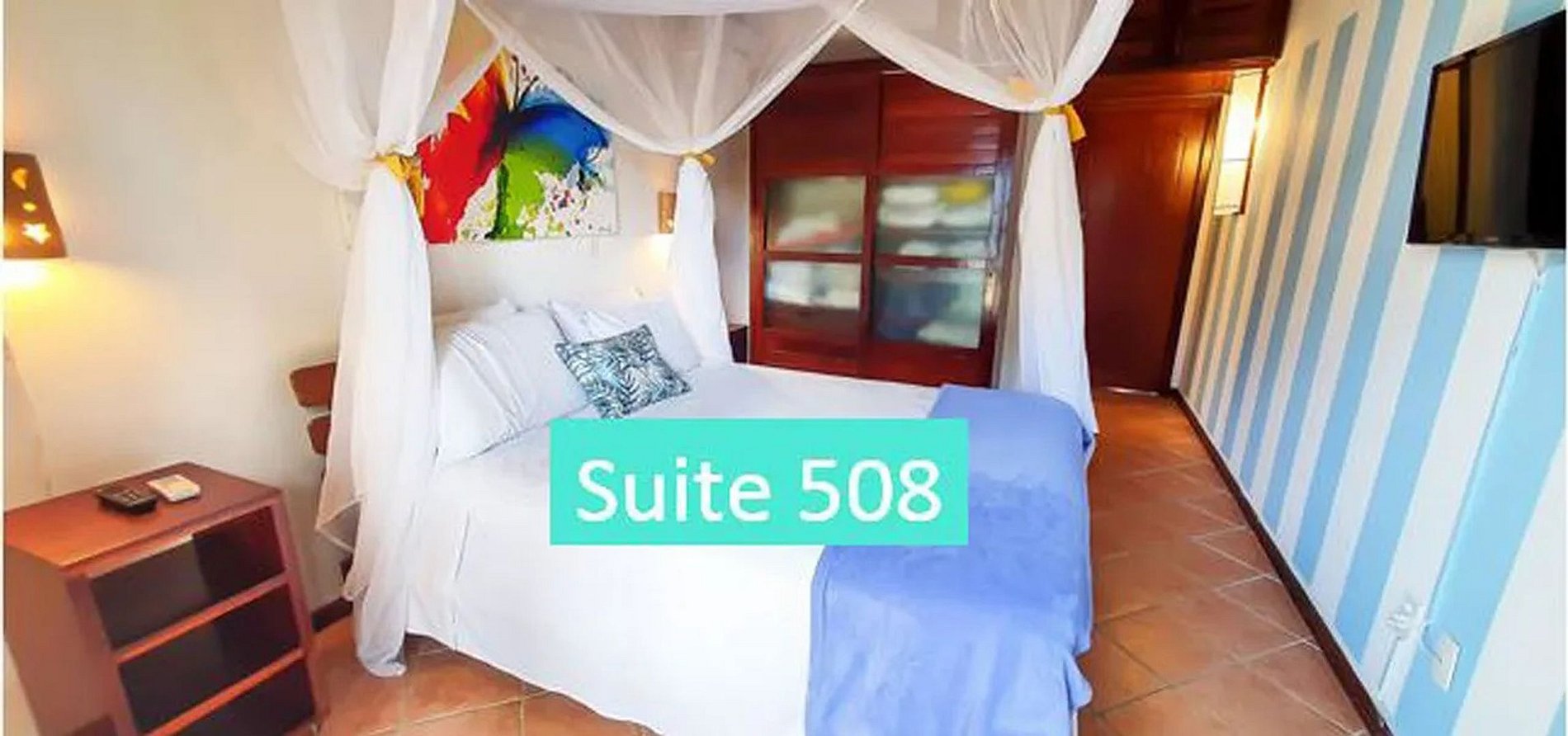 Suite 508 atende 2 hospedes - Casas do Marco no Condomínio Club Mar Paraiso na praia Mucugè