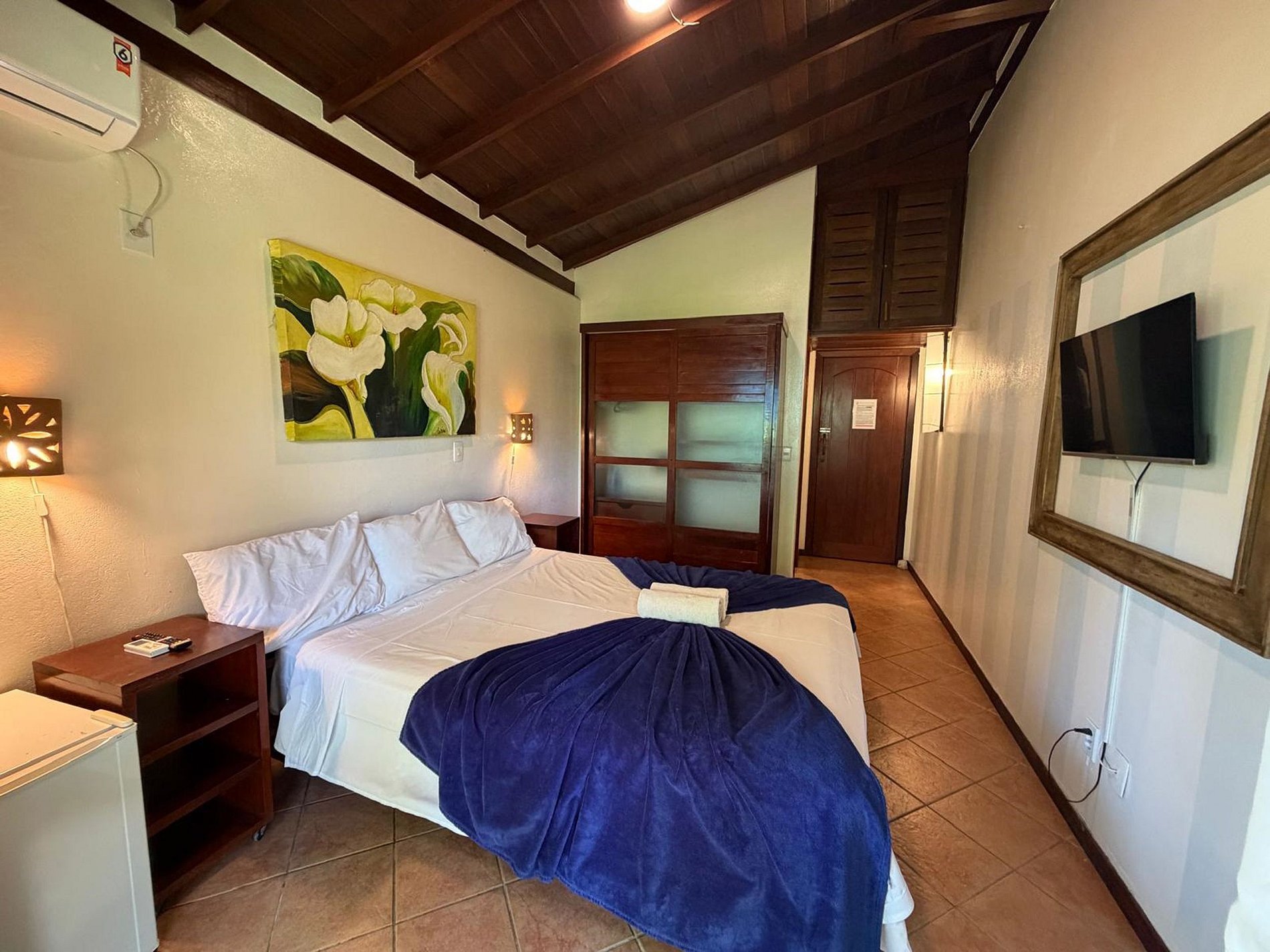 1 Suite com cama Queen e banheiro, ar split, TV e frigobar.